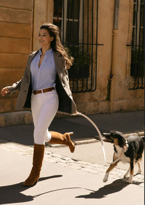 Tricks (tours): Au pied, check, la patte, se positionner entre les jambes, marcher en étant restant entre les jambes, bisou/kiss, saute/monte